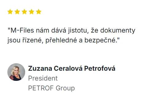 "M-Files nám dává jistotu, že dokumenty jsou řízené, přehledné a bezpečné."